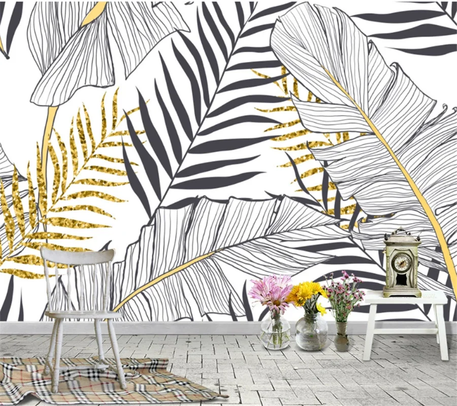 Best Painting Supplies & Wall Treatments from Honesty ye Store for Background Wallpaper Banana Leaf Living-Room Wellyu Black Nordic Hand-Painted White 3d